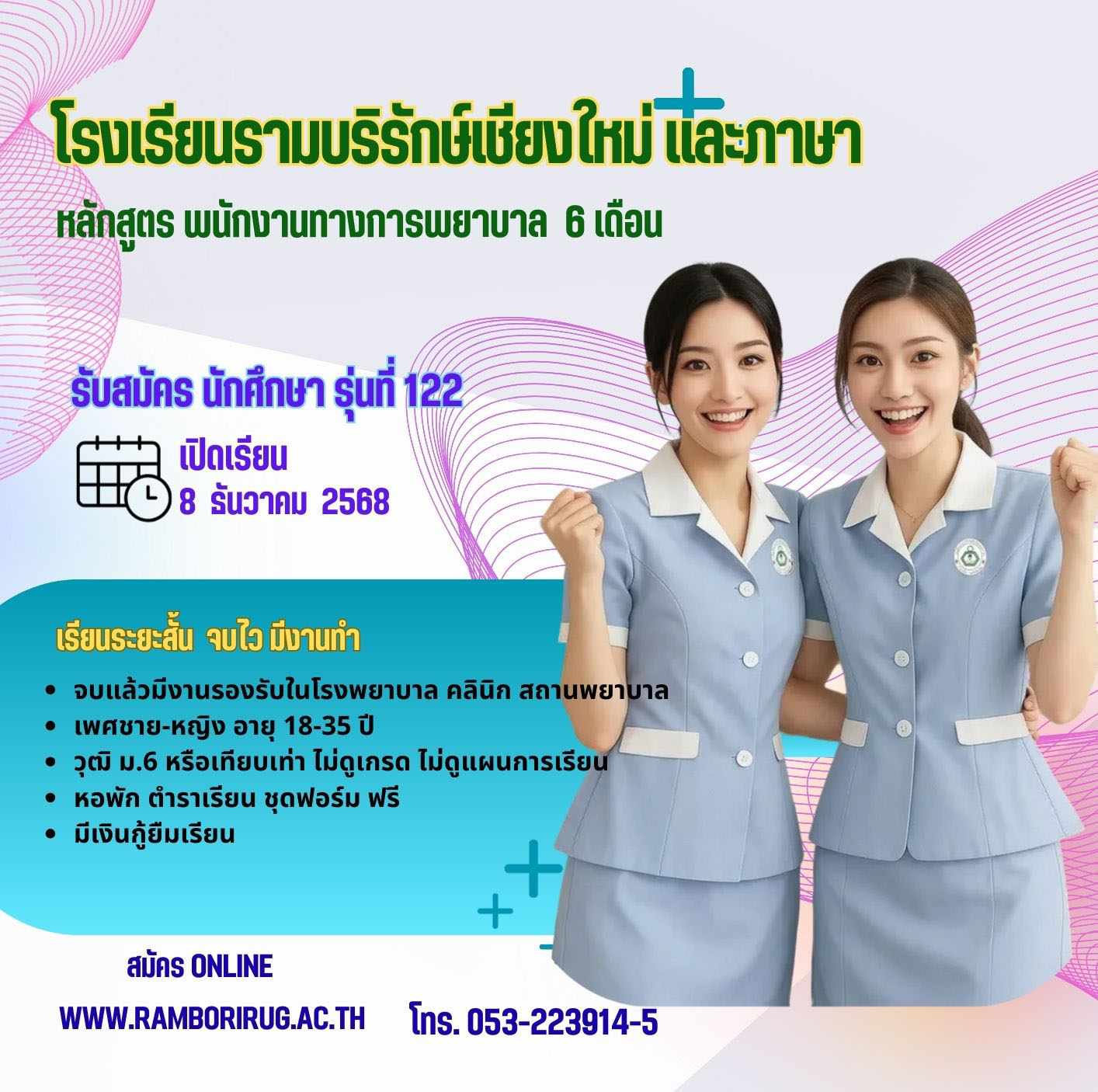 หลักสูตรการอบรมพนักงานทางการพยาบาล 6 เดือน หลักสูตรบริบาลไทย ทำงานประเทศญี่ปุ่นวันที่ 19 ธันวาคม 2567 นายพิพัฒน์ รัชกิจประการ รัฐมนตรีว่าการกระทรวงแรงงาน พร้อมคณะ ได้เข้าเยี่ยมเยือน นักศึกษาโรงเรียนรามบริรักษ์เชียงใหม่และภาษา ที่เข้าทำงานในโรงพยาบาลทาเคซาโตะ จังหวัดไซตามะ ประเทศ...